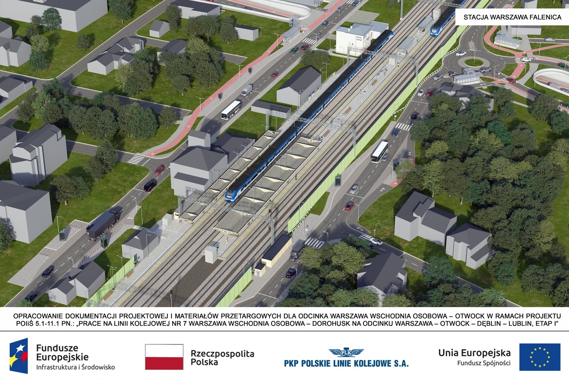 Projekt „Prace na linii kolejowej nr 7 Warszawa Wschodnia Osobowa – Dorohusk na odcinku Warszawa – Otwock – Dęblin – Lublin, etap II b” (Warszawa Wawer – Otwock) ubiega się o współfinansowanie przez Unię Europejską ze środków Fundusze Europejskie na Infrastrukturę, Klimat, Środowisko 2021-2027